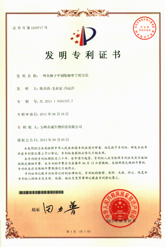 The invention ZL201110161337.7 A method of making persimmon tannin from persimmon 2013.6.5