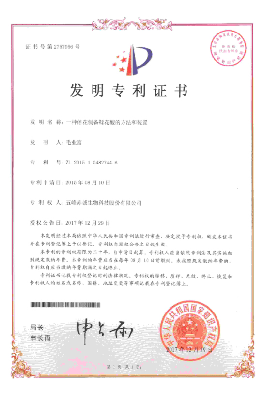 The invention ZL201510482744.6 A method and apparatus for preparing ellagic acid from double flower 2017.12.29